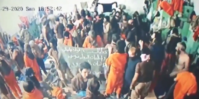 وبثت مصادر إعلامية كردية مقطعاً مصوراً يظهر لحظة بدء السجناء لتمردهم.