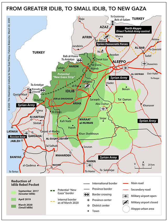 شكّل اتفاق وقف إطلاق النار بين روسيا وتركيا التي تم التوصل إليه في محافظة إدلب السورية في 5 آذار/مارس، الخطوة الأخيرة في عمليةٍ دأبت منذ نيسان/أبريل 2019 على تقليص حجم جيب الثوار إلى النصف. لكن حتى هذا الترتيب يبقى مؤقتاً نظراً لعزم بشار الأسد على التخلص مما يصفه هو وحلفاؤه بـ”جهادستان”. وتُظهر نظرة فاحصة على حالة الأراضي والخصائص الديمغرافية في المنطقة كيف ستؤدي التطورات الجارية على الأرجح، إلى قيام “قطاع غزة جديد” في شمال غرب سوريا – أي، منطقة للاجئين مكتظة بالسكان يسيطر عليها الإرهابيون، مما يرغم المجتمع الدولي بشكل أساسي على التعامل معهم لأنهم “سلطات الأمر الواقع”، وفقاً لتعبير الأمم المتحدة.