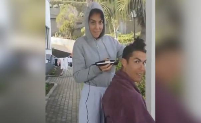 ونشر رونالدو نجم يوفنتوس الإيطالي تسجيل فيديو عبر حسابه على تويتر، يظهر فيه صديقته الإسبانية جورجينا رودريغيز وهي تقص شعره في منزلهما.
