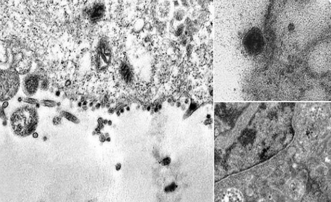 وفي إحدى الصور، يمكن رؤية العديد من جزيئات الفيروس التي تحاول إصابة السيتوبلازم بالخلية – حيث تحافظ على المادة الجينية.