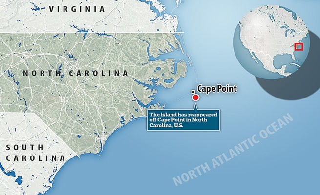 عادت جزيرة شيللي الواقعة قبالة ساحل ولاية كارولينا الشمالية الأمريكية في المحيط الأطلسي شرق البلاد، للظهور مجدداً، بعد مرور عامين على اختفائها المفاجئ.