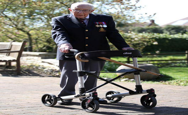 ووضع الكابتن توم مور، ضابط الجيش المتقاعد الذي يستخدم أداة تساعده على المشي منذ أن أصيب بكسر في فخذه، هدفا يتمثل في السير لمسافة 25 مترا حول حديقة منزله 100 مرة قبل عيد ميلاده المئة الذي يحل هذا الشهر.