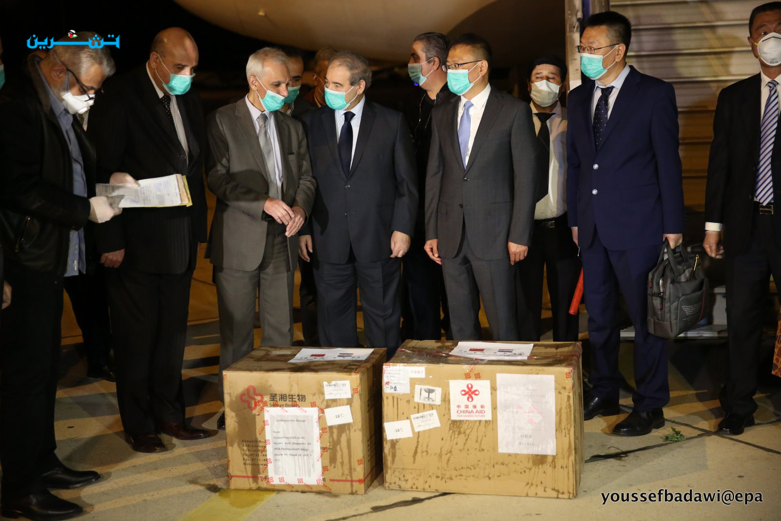 ومن مطار دمشق، أعرب فيصل المقداد نائب وزير خارجية بشار الأسد عن “تقدير سورية لمواقف الصين إلى جانب سورية وللمساعدات الطبية المقدمة للشعب السوري والتي تمثل تعبيراً حقيقياً عن حرص جمهورية الصين الشعبية على مساعدة سورية وكل دول العالم في التصدي لفيروس كورونا”.