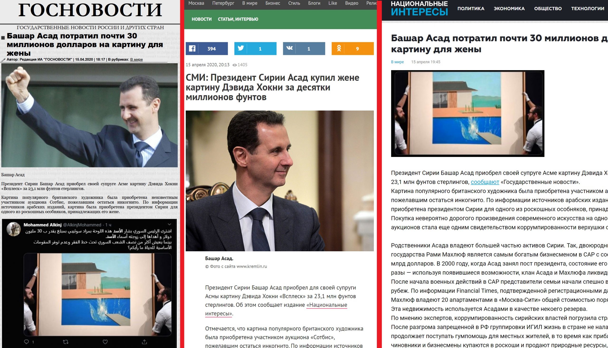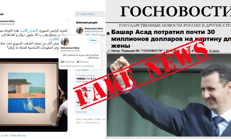انتشر يوم أمس “خبر” يتحدث عن شراء بشار الأسد للوحة شهيرة لرسام بريطاني بقيمة 30 مليون دولار، ونسب لوسائل إعلام روسية.
