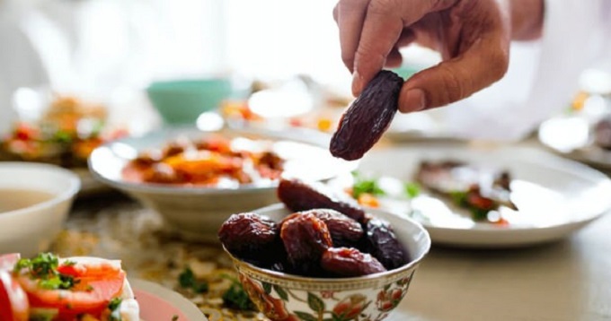 وجبة الإفطار التقليدية تبدأ بتناول التمر الذي في تزويد الجسم بالسكريات التي يفقدها خلال اليوم، بالإضافة إلى المواد الغذائية المتنوعة.