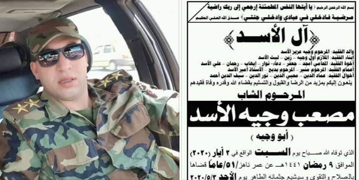 قالت مصادر إعلامية موالية، السبت، إن حادث سير أودى بحياة مصعب وجيه الأسد، وتسبب بإصابة ابنه.