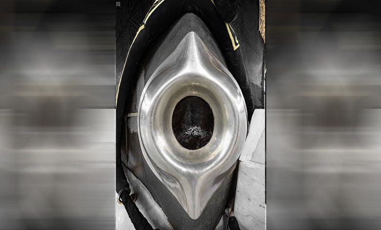 ولفت التقرير إلى قطع الحجر الأسود، ذاكرا: “يتكون الحجر الأسود من ثماني قطع من الجزء المتبقي منه في ظاهره مجموعاً بعضها إلى بعض بأشكال متفاوتة”.