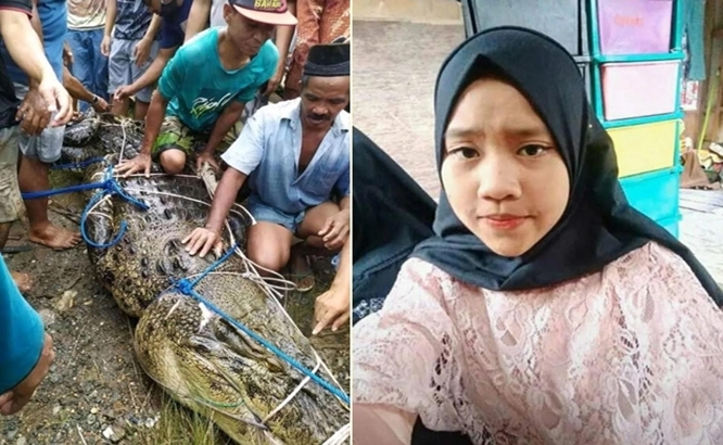 لقيت فتاة أندونيسية مصرعها بعد أن تمكن تمساح من الإمساك بها وإغراقها في النهر، لكنه لم يتمكن من التغذي عليها بسبب فقده لجميع أسنانه.