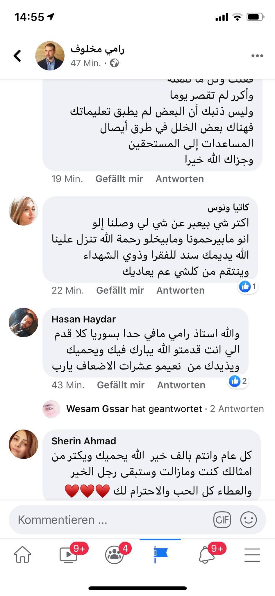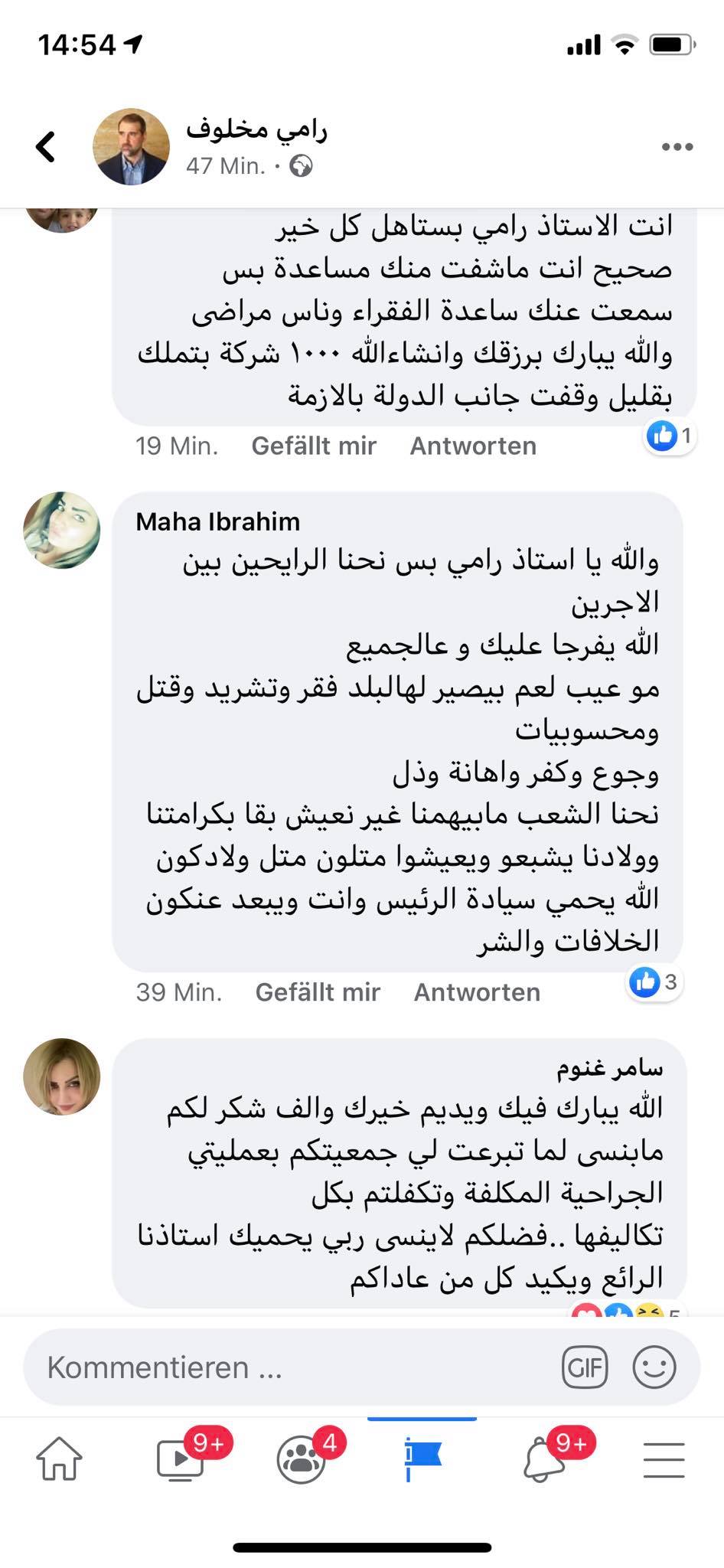 تضامن كبير و شكر و دعوات لتحقيق النصر ! .. جانب من تعليقات الشارع الموالي على معايدة رامي مخلوف و ” العيدية ” الضخمة التي قدمها
