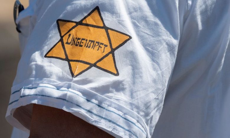 وكان محتجون في عدد من المدن الألمانية قد دأبوا على تعليق النجمة السداسية الصفراء وقد كتب عليها “غير ملقح”.