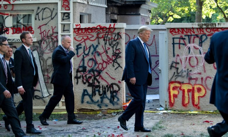 وتوجه ترامب مساء الإثنين سيراً وسط حراسة أمنية مشددة من البيت الأبيض إلى كنيسة سانت جون، التي طالتها أعمال تخريب ليل الأحد. ووقف ترامب أمام الكنيسة لالتقاط الصور رافعاً الكتاب المقّس، قائلا “لدينا دولة عظيمة”. (CNN)