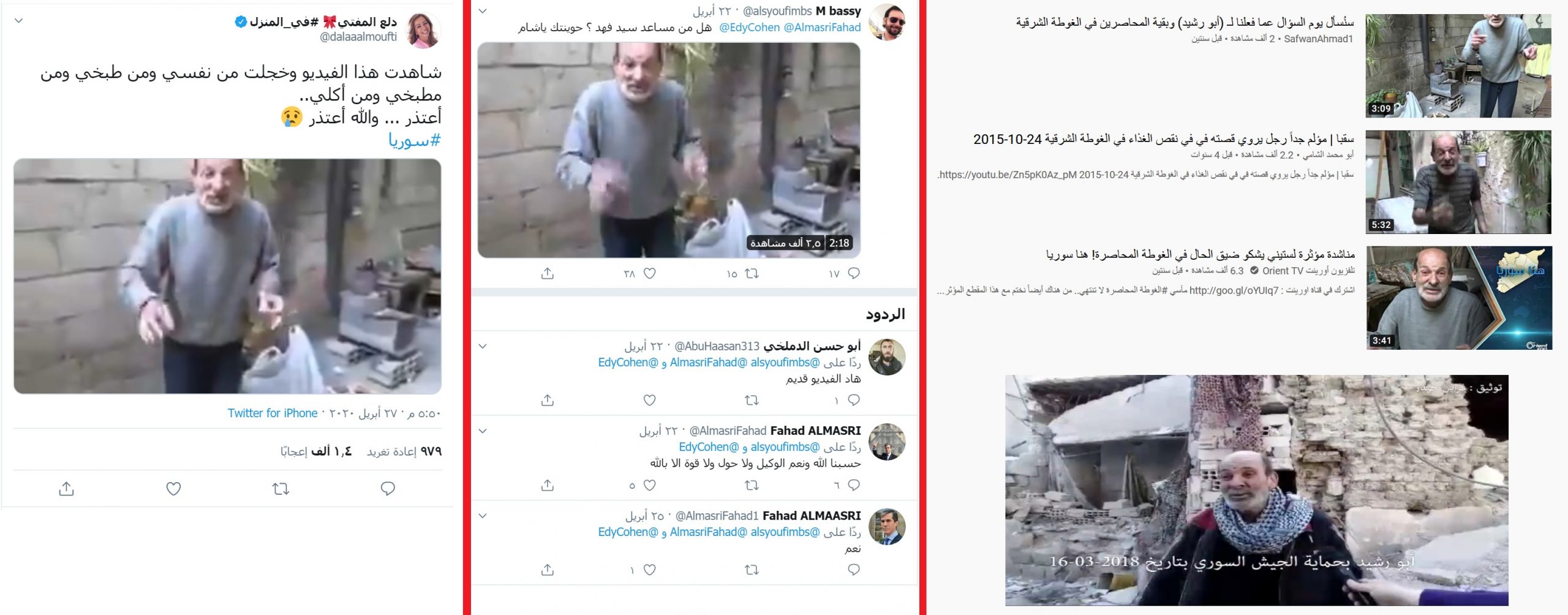 وببحث عكس السير عن تاريخ الفيديو، يتبين أنه قديم يظهر “أبو رشيد” الذي كان وعائلته من المحاصرين من قبل جيش بشار الأسد، في الغوطة الشرقية قبل سنوات.