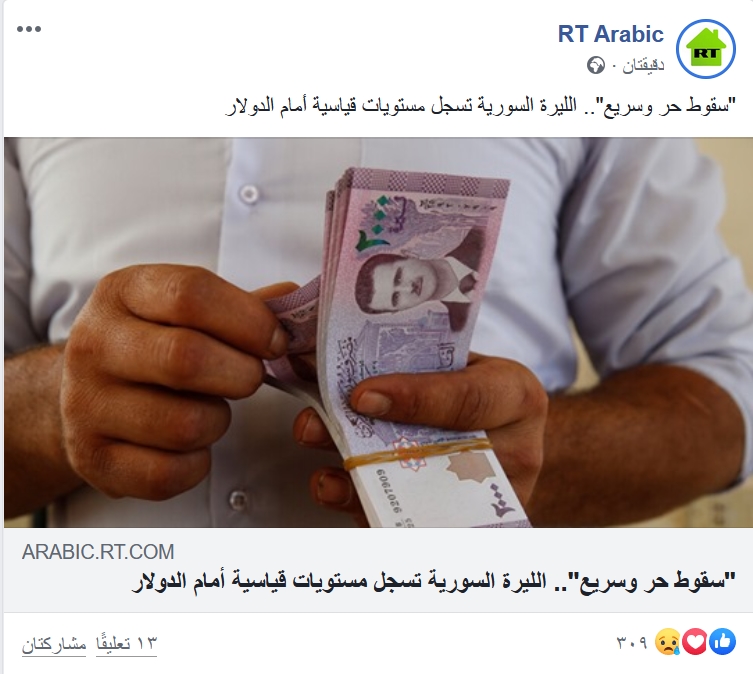 الإعلام الروسي : ” سقوط حر و سريع .. الليرة السورية تسجل مستويات قياسية أمام الدولار “