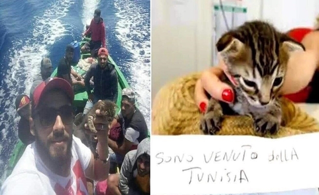 وأفادت صحف إيطالية بأن قاربا يضم مجموعة من الشباب، وصل منذ يومين من تونس إلى لامبيدوزا، وكان بين المهاجرين قطة صغيرة داخلة قبعة مصنوعة من القش.