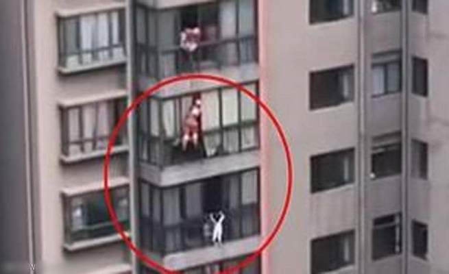 إنقاذ إعجازي لطفلة صينية عالقة بالطابق الرابع عشر ( فيديو )
