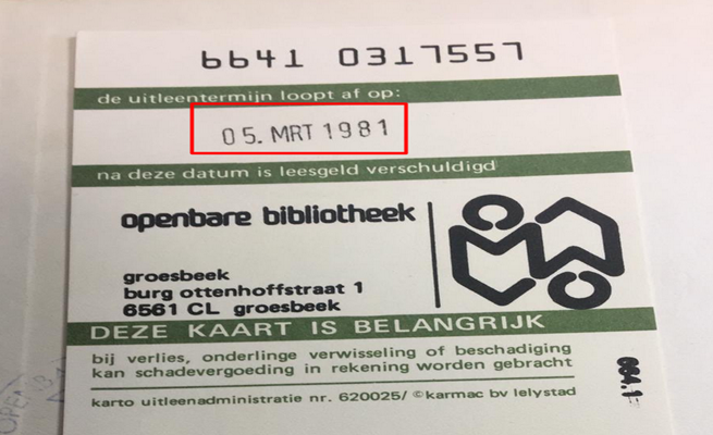 ونشرت المكتبة عبر حسابها على موقع تويتر تغريدة تحمل صورة بتاريخ إستعارة الكتاب في الخامس من شهر مارس عام 1981، ما يعني مرور أكثر من39 عاما على إعادة الكتاب بعد استعارته، وبالتحديد 39 عاما و13 أسبوعا و5 أيام على موعد إعادته.
