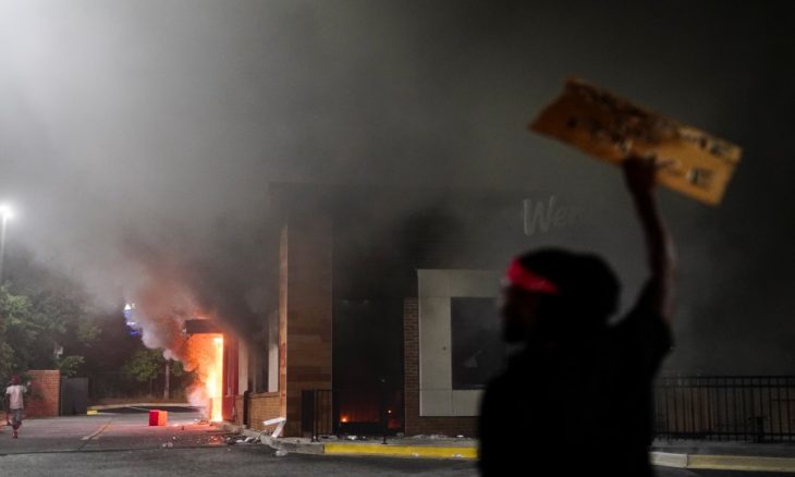 محتجون يحرقون مطعماً بمدينة أتلانتا الأمريكية قُتل عنده شاب أسود بنيران الشرطة