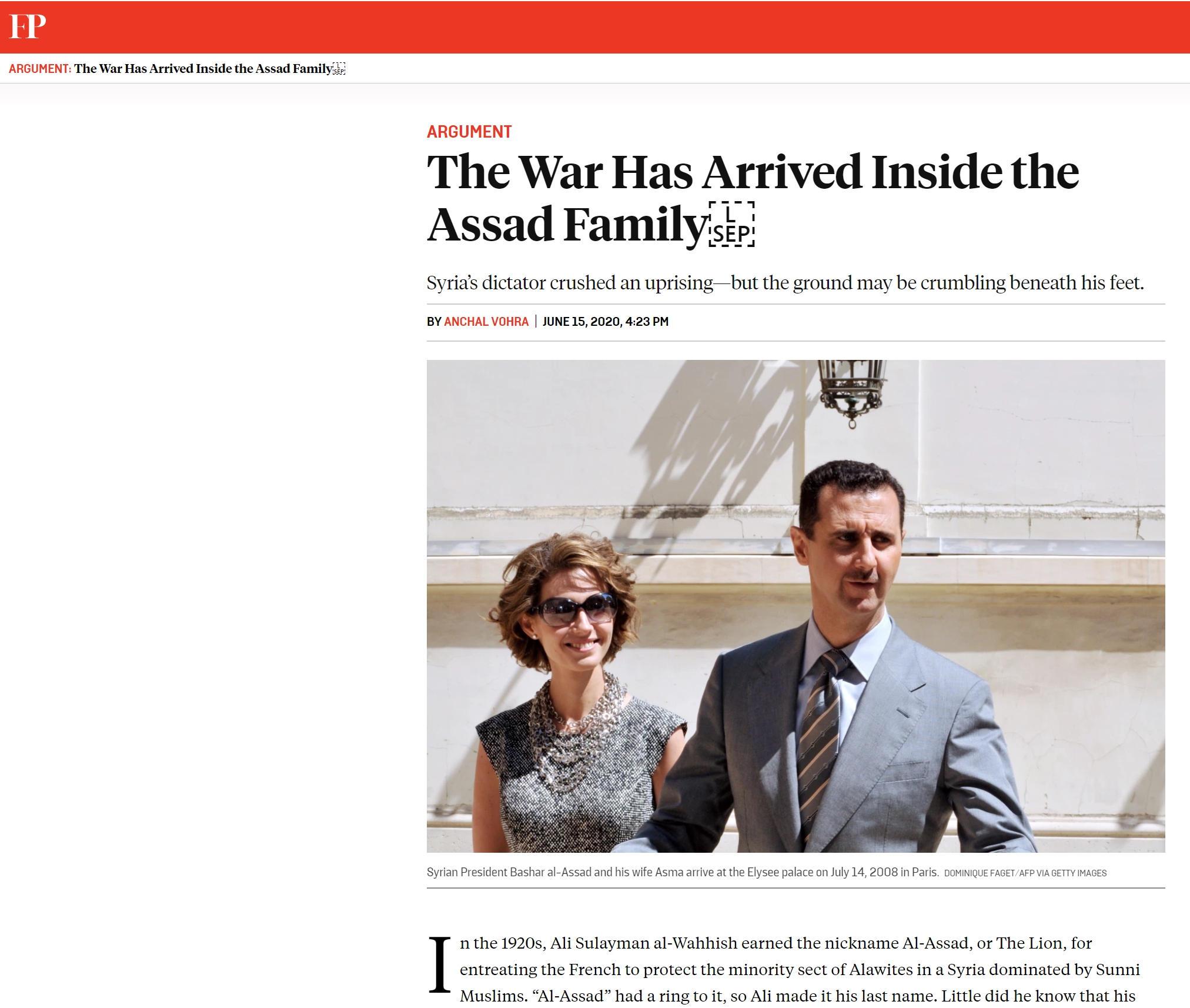 خطورة التحدي تمكن في أن مصدره عائلة الأسد ذاتها. وقد أعطى الخلاف الأخير بين الأسد ورامي مخلوف، وفق مقال لمجلة فورين بوليسي، أملا جديدا لمنافسي بشار من أقاربه وحلفائه السابقين.