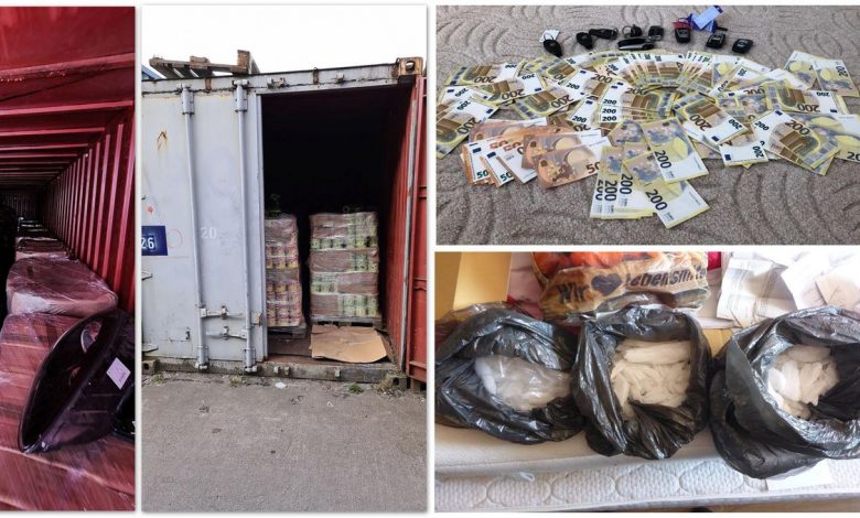 وأثناء عمليات البحث تم العثور على العديد من الهواتف المحمولة، وناقلات البيانات، وثلاثة كيلوغرامات من مخدرات الميثامفيتامين البلوري، بقيمة ربع مليون يورو، بالإضافة لأصول مالية، تبلغ ما يقرب من مليون يورو.