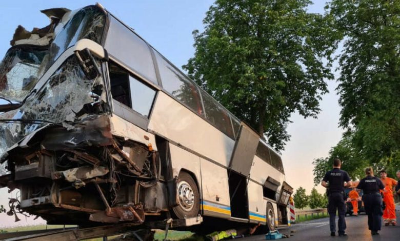 وكانت حافلة النقل العام القادمة من مدينة بريمن، الاثنين، قد انحرفت لأسباب عير معروفة، وقاد سائقها في الاتجاه المعاكس في شارع “بوندس شتراسه 246” بين مدينتي ميتنفالد وتيلتس، واصدمت بواجهة شاحنة نقل صغيرة، ثم انحرفت الحافلة إلى اليمين واصطمت بحاجز الطريق وبشجرة خلفه.