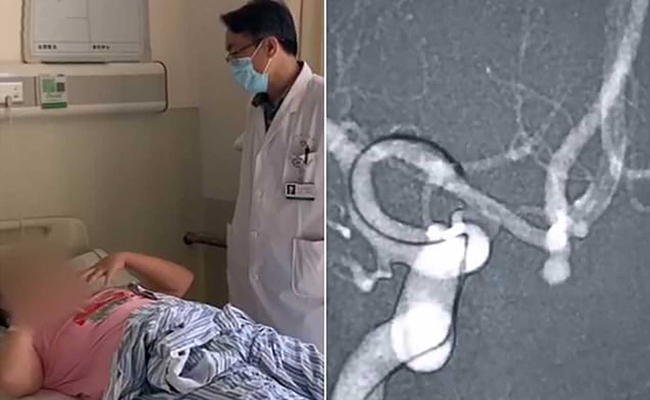 بعد إجراء التصوير المقطعي (طبقي محوري) اكتشف المسعفون تمددًا دمويًا بحجم 2.5 ملم (0.09 بوصة) في دماغ المرأة الصينية.