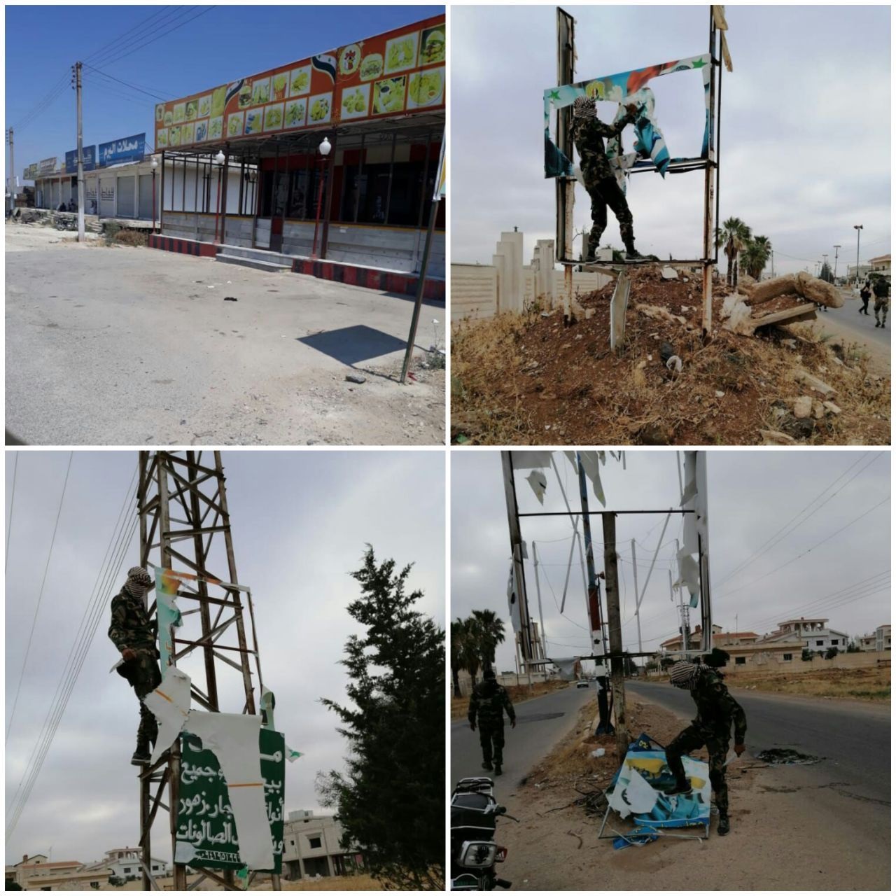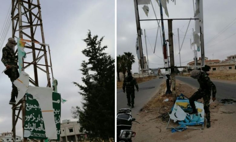 عناصر من فيلق روسيا الخامس يمزقون صور بشار الأسد