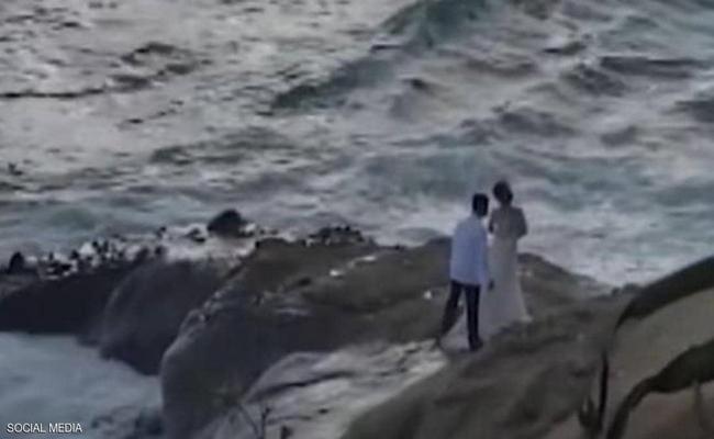 أراد عروسان أن يحتفلا بعقد قرانهما بطريقة غير تقليدية، فوقفا على شاطئ البحر من أجل التقاط الصور التذكارية، غير أن الأمر انتهى بمأساة.