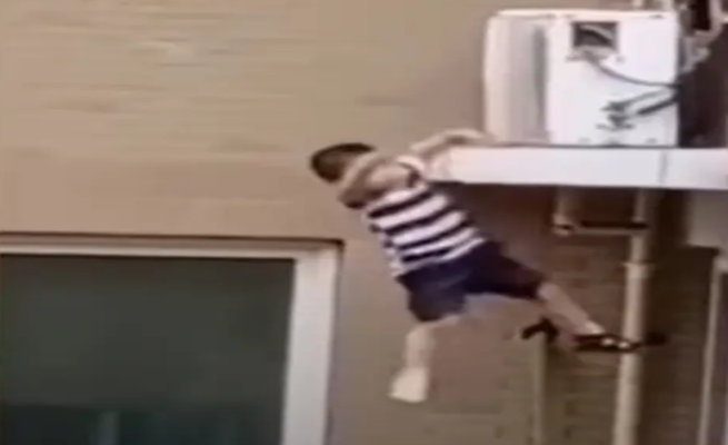 طفل صيني يسقط من ارتفاع مرعب و ينجو بأعجوبة ( فيديو )