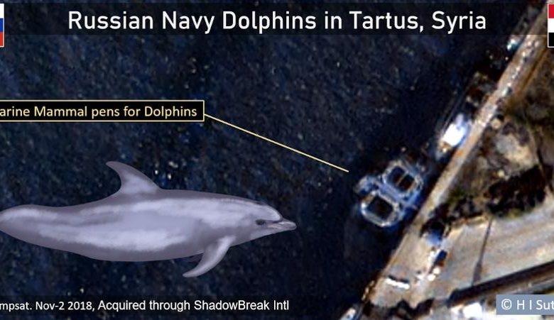 ذكرت مجلة أمريةي أن صوراً التقطت عبر القمر الصناعي تظهر أن البحرية الروسية أرسلت دلافين مدربة إلى سوريا، ونشرها في قاعدة طرطوس البحرية في أواخر عام 2018.