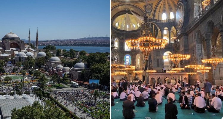 وانضم الرئيس التركي رجب طيب أردوغان لحشود ضخمة في آيا صوفيا في اسطنبول يوم الجمعة محققا طموحه بعودة الصلاة للموقع التاريخي الذي يعتبره اليونانيون في المقابل مركزا لعقيدتهم الأرثوذكسية.