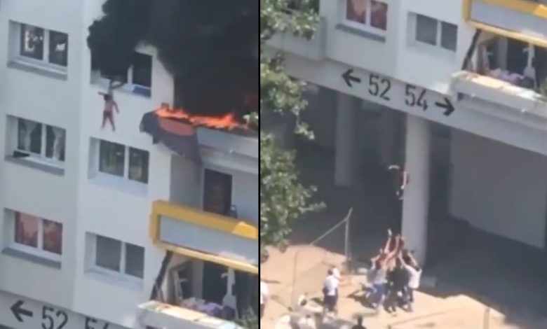 انتشر مقطع مصور يظهر لحظة إنقاذ طفلين بطريقة مرعبة من حريق اندلع في شقتهم في مدينة غرونوبل الفرنسية.