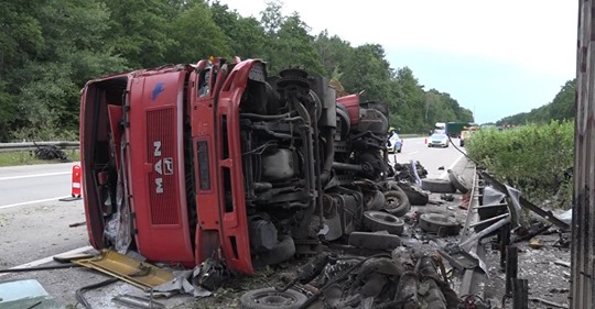 وبعد انفجار الإطار، انحرفت الشاحنة في الاتجاه المعاكس، وارتطمت بجانب الطريق، وانفصلت القاطرة الخلفية، وارتطمت بسيارة، وأصيب سائق الشاحنة، البالغ من العمر 33 عامًا، بجروح طفيفة.