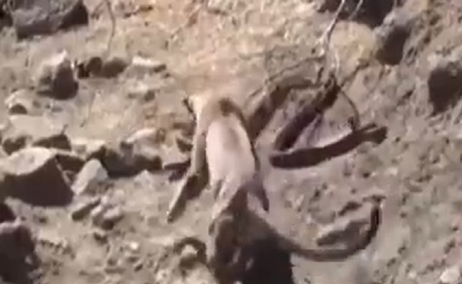 تداول رواد مواقع التواصل الاجتماعي مقطع فيديو يظهر مواجهة خطيرة بين فهد وثعبان ضخم، حسمتها ضربة مباغتة من الفهد الذي نجا من سم الثعبان.