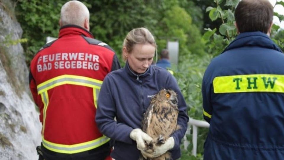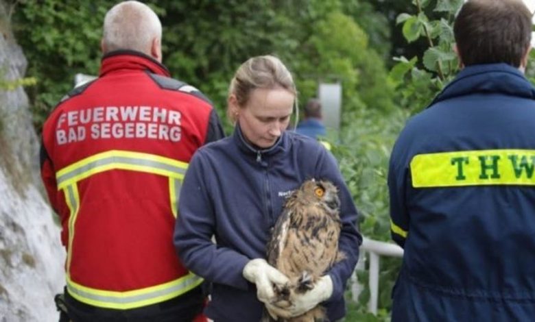 في ألمانيا .. 20 رجلاً و3 ساعات لإنقاذ بومة علقت ببئر ( صور )