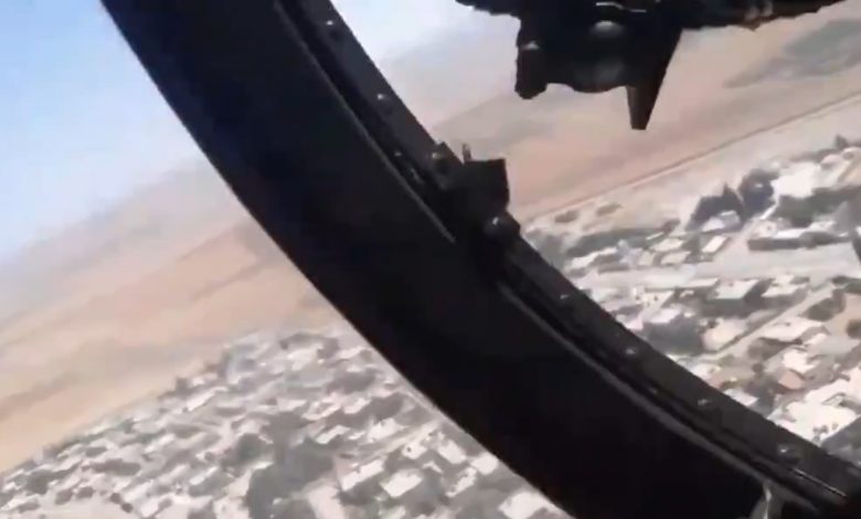 وقال الموقع إن الفيديو يظهر طائرة هليكوبتر من طراز “مي 25” تابعة لسلاح الجو السوري، حلقت على ارتفاع منخفض للغاية.