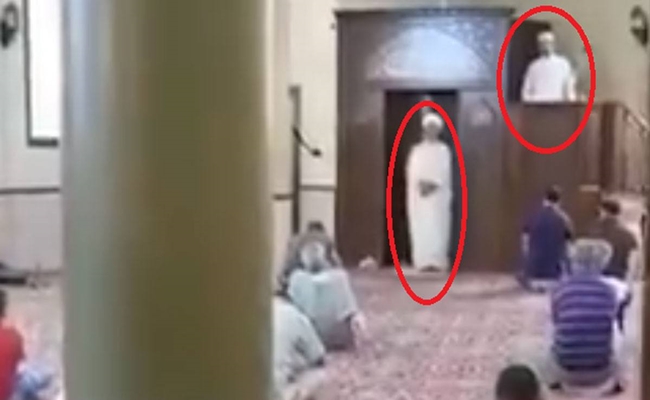 وأظهر الفيديو قيام أحدهما بالبدء في الصلاة، بينما الآخر ما يزال يلقي الخطبة وسط استغراب الحاضرين.