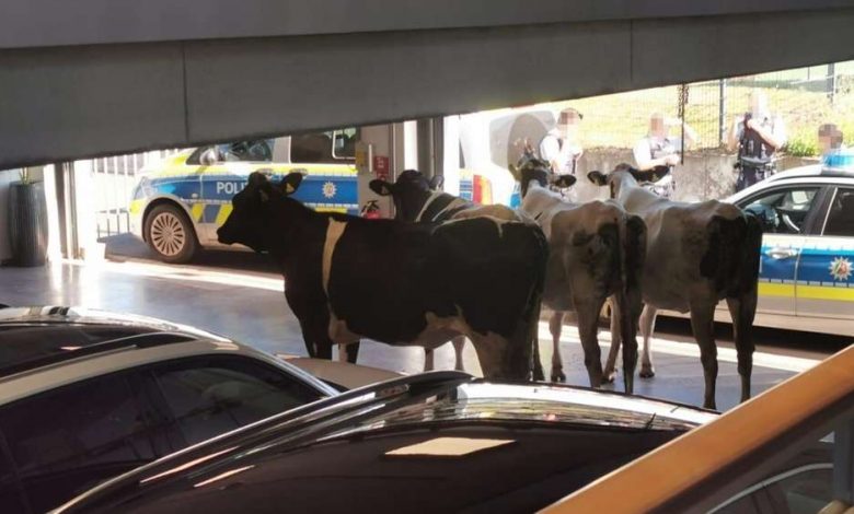 اقتحمت عدة أبقار معرضاً لبيع السيارات في مدينة فيلبرت، بولاية شمال الراين فيستفاليا الألمانية.