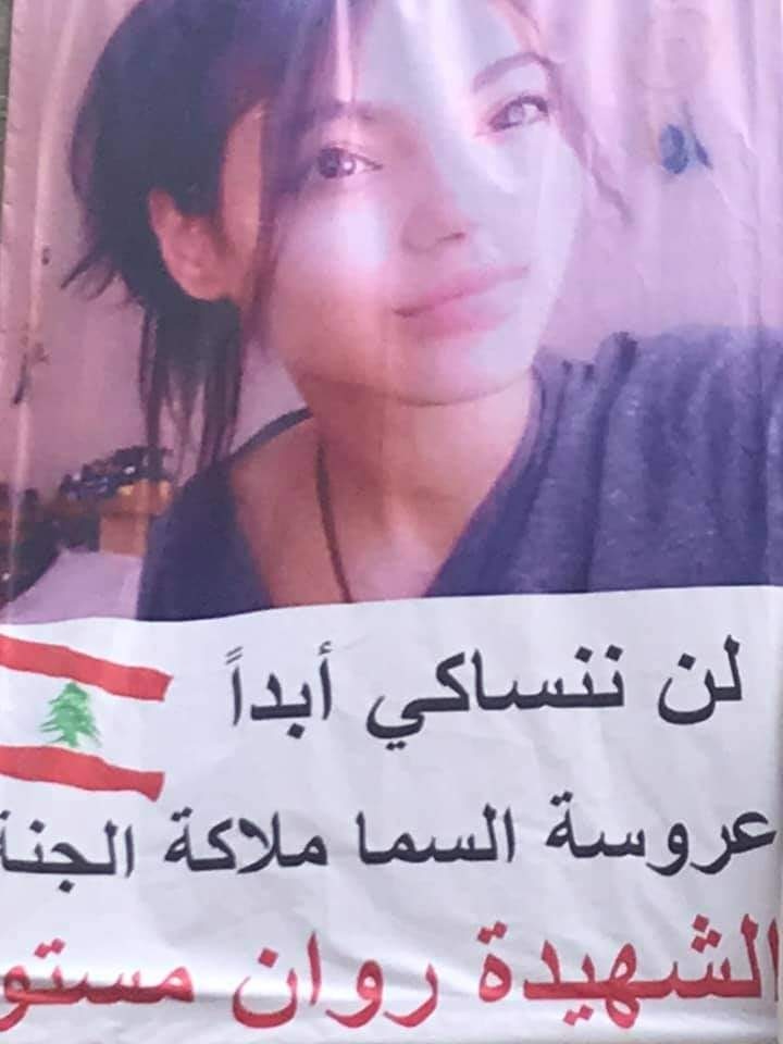 وفي يوتيوب، رصد عكس السير فيديو يظهر تشييع جثمان الفتاة وسط إطلاق للنار وعزف لأغنية “تعلى وتتعمر يا دار”، وعلى إحدى الشرفات صورة روان وإلى جانبها العلم اللبناني.