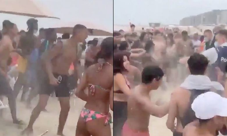في مصيف بلجيكي .. شجار ضخم بين المصطافين ! ( فيديو )