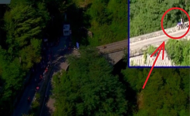 واصطدم الدراج البلجيكي ريمكو إيفانيبويل البالغ 20 عاما بالجانب الأيمن لحافة الجسر بسرعة كبيرة بعد نزوله من أحد المنعطفات القاسية، وسقط بعدها عن الجسر بطريقة مروعة.