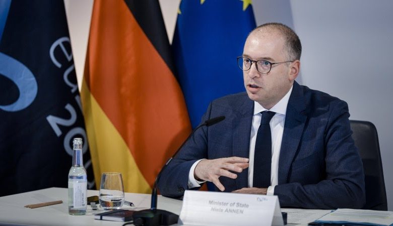 أكد وزير الدولة الألماني للشؤون الخارجية، نيلز أنين، خلال لقائه مع رئيس الوزراء الفلسطيني محمد اشتية، على استمرار دعم بلاده لحل الدولتين ووقوفها إلى جانب القانون والقرارات الدولية.