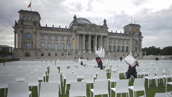 آلاف الكراسي أمام برلمان ألمانيا للفت النظر لأزمة المهاجرين في اليونان ( فيديو )