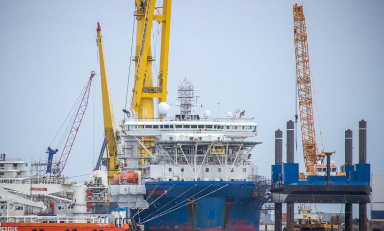 أدت التهديدات الهائلة بفرض عقوبات أمريكية على المشاركين في المشروع إلى توقف مد خط الأنابيب قبل وقت قصير من اكتماله نهاية العام الماضي 2019، وتستأنف الآن السفن الروسية العادية التي ما تزال في موانئ مكلنبورغ فوربومرن العمل فيه. (DPA)