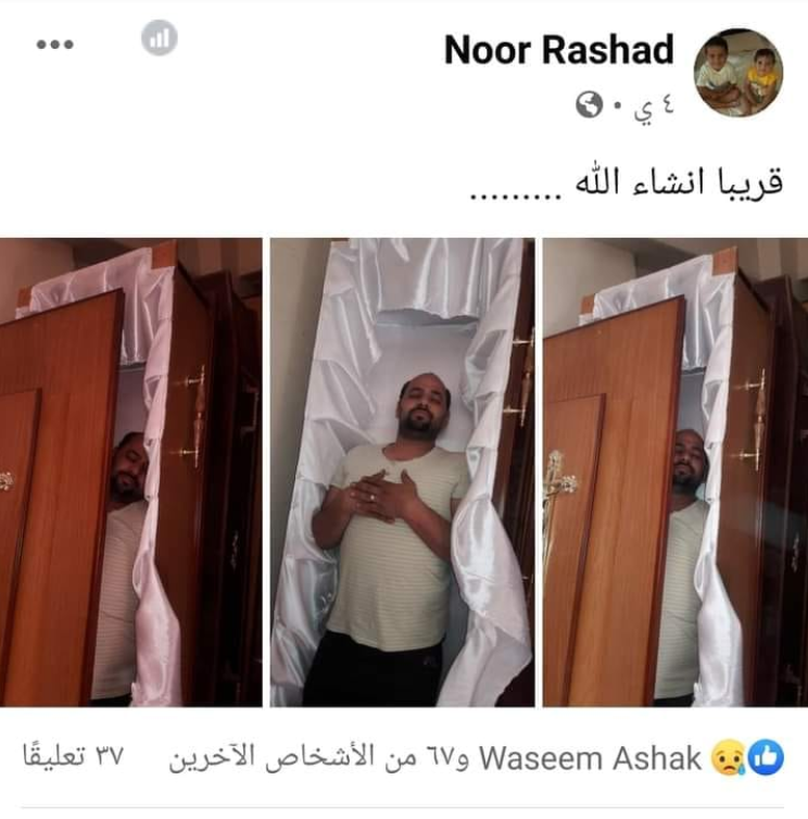 كانت صور نشرها المواطن المصري نور رشاد عبر “فيسبوك” تظهره راقدا في تابوت وأرفقها بكلمات “قريبا إن شاء الله”، ستبقى ربما مزحة ثقيلة، لولا أن صاحبها توفي فعلا بعد أيام معدودة.