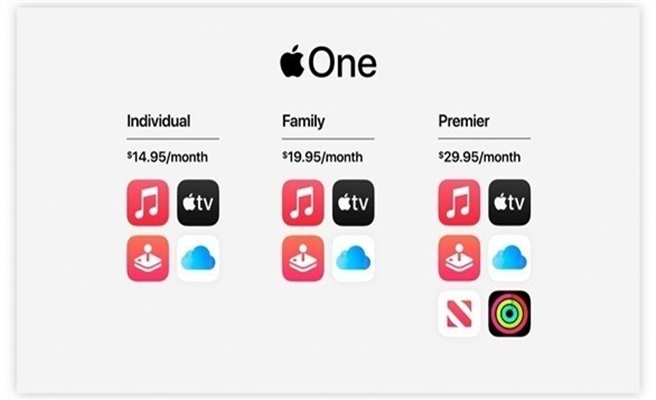 تسمح هذه الباقة بالاشتراك في أبل ميوزيك، وآبل تي في بلس، وأبل آركيد، مع مساحة 50 غيغابايت من خدمة “آي كلاود” مقابل 14.95 دولاراً في الشهر.