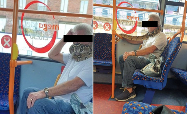 وقال أحد الركاب: “في البداية اعتقدت أنه كان يرتدي قناعاً غريباً حقاً، إلى أن ترك الثعبان يزحف حول يديه والمقابض”، فيما قال آخر: “لم يزعج أي شخص في الحافلة، لكن رجلاً في الخلف صوّر مقطع فيديو. كان الأمر مسلياً”.