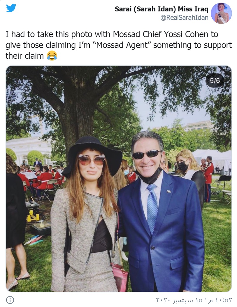 ملكة جمال العراق بصحبة رئيس الموساد في حفل توقيع اتفاقات التطبيع بالبيت الأبيض ( صور )