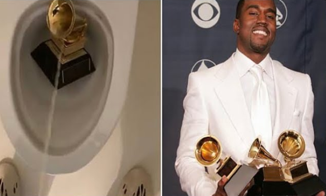 ونشر مغني الراب الفيديو على ”تويتر“، الأربعاء، يظهر أحد جوائز غرامي موضوعة داخل مرحاض، ويقوم بالتبول عليها.