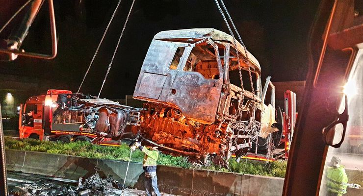 وقامت السلطات بفحص الأضرار التي لحقت بالإسفلت والجدران الخرسانية على جانبي الطريق، وتبين أن الأسفلت قد تضرر بشدة من الحرارة، لدرجة أنه يجب استبداله.