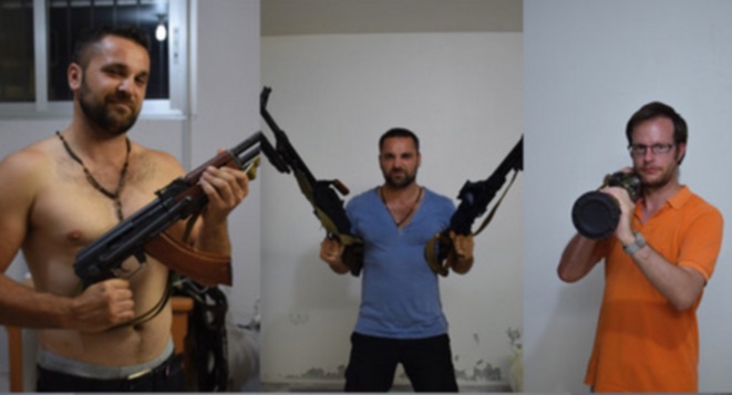 ويلفت الانتباه صور ممثلي المنظمة “ألكسندر جودارزي” و”بنيامين بلانشارد” وهما يحملان بنادق الكلاشينكوف في سوريا.
